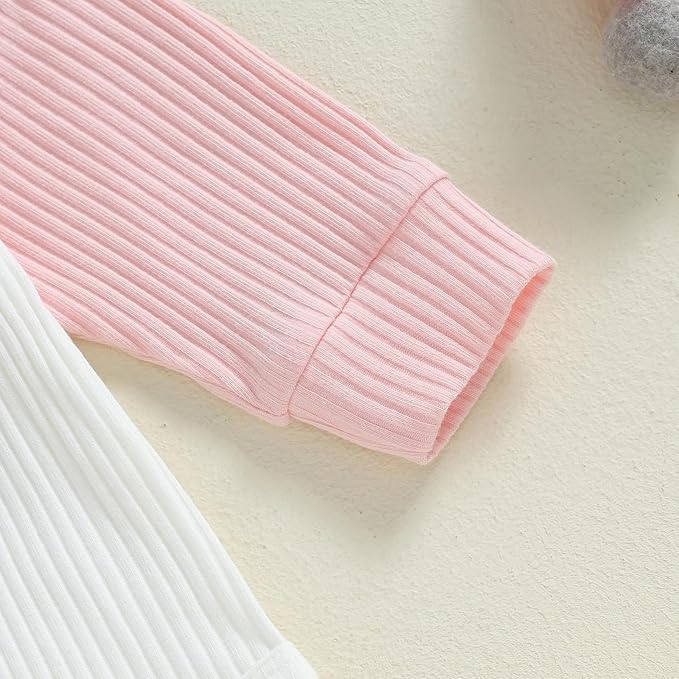 Thorn Tree Newborn Infant Baby Girl Clothes Ribbed Knitted Long Sleeve Romper Long Pants Stretchy Fall Outfits