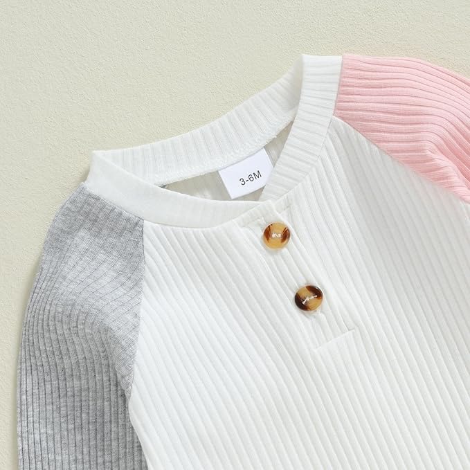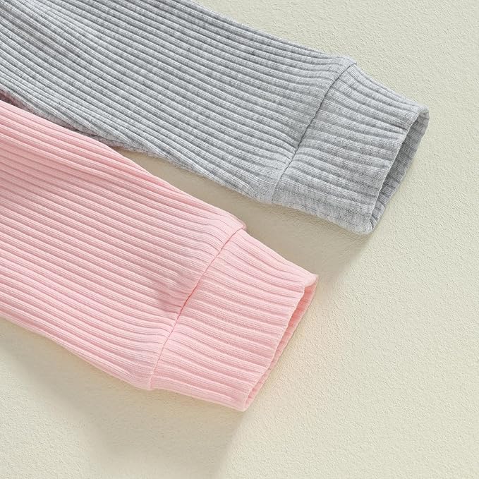 Thorn Tree Newborn Infant Baby Girl Clothes Ribbed Knitted Long Sleeve Romper Long Pants Stretchy Fall Outfits