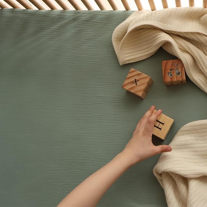 Crib Sheets – Organic Cotton Muslin Fitted Crib Sheet – Standard Size for Baby Boy and Baby Girl 28" x 52" Ultra-Soft and Breathable. 2-Pack (Fog/Roman Green)