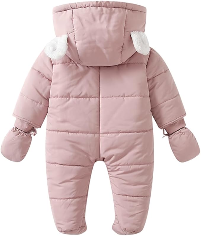 Baby Winter Snowsuit Warm Hooded Coat Onesie Romper Jumpsuit with Footed Gloves for Boys Girls 3-24 Months