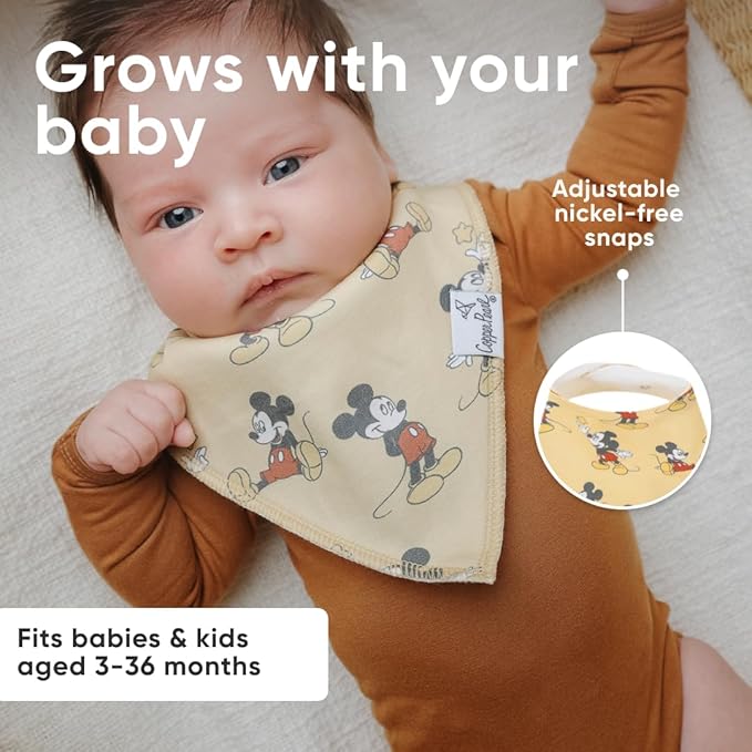 • ADJUSTABLE NICKEL FREE SNAPS; Each baby bandana bib comes with 2 nickel-free snaps that allow each bib to be adjustable in size to fit newborns and toddlers, with ages ranging from 3-24 months; The snaps are secure, making it difficult for infants and toddlers to unfasten but are easy for parents to snap on and off