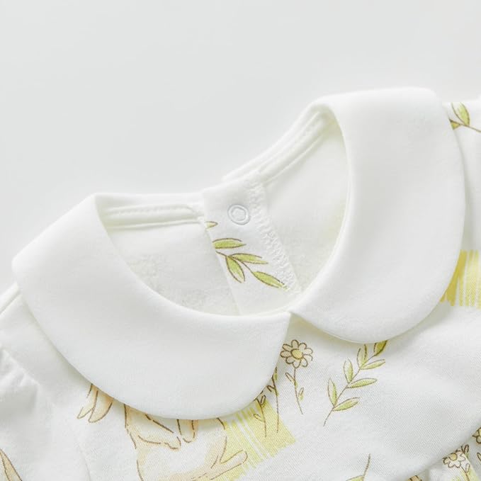 • FEATURES - Allover bunny pattern prints, peter pan collar, long sleeve, elasticized ruffled cuffs, with these adorable designs, your baby will get tons of compliments on it