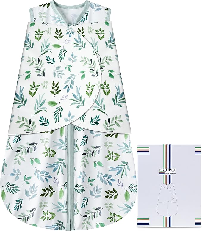 Newborn Sleep Sack Baby Swaddle,Swaddle me 3-6 Month,3-Way Adjustable Wearable Blanket,100% Rayon Cotton Swaddling Sleeping Bag,TOG 0.5 (Leaf, 3-6 Months)
