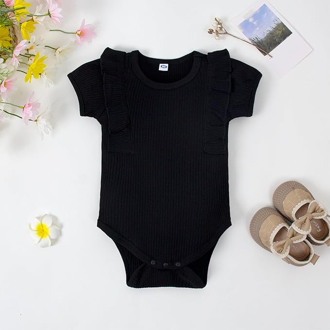 • Size -- Very cute ruffle sleeve romper suitable for 3 months 6 months 9 months 12 months 18 months baby girls.
