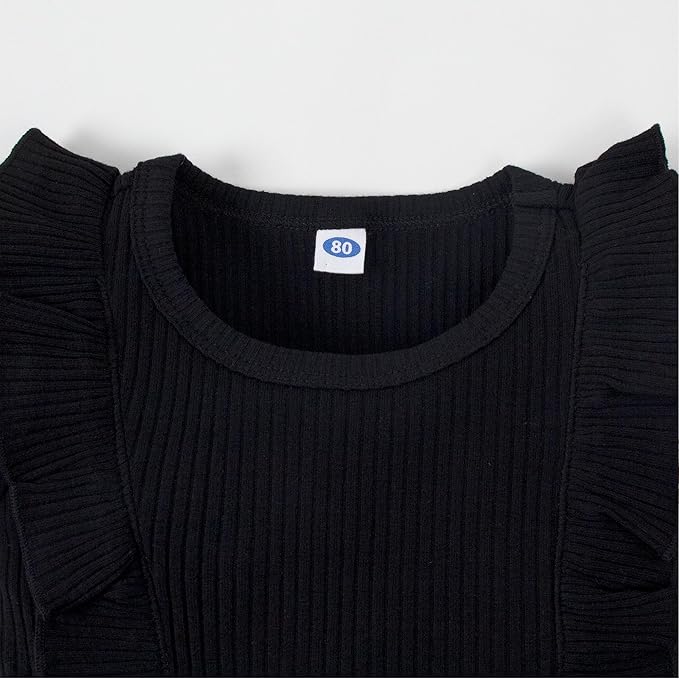 0-24M Infant Ribbed Romper Baby Girls Knit Ruffle Bodysuit Toddler Girl Solid Color Jumpsuit Holiday Shirt Tpos