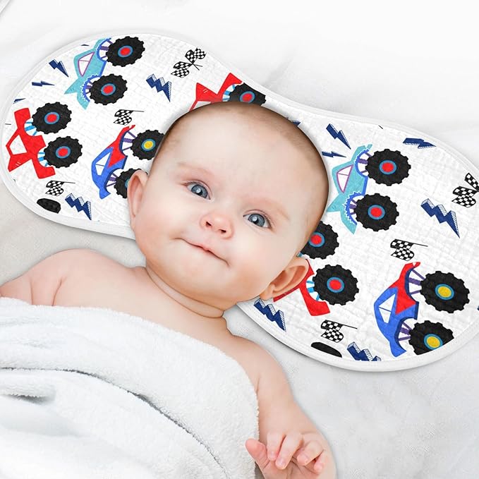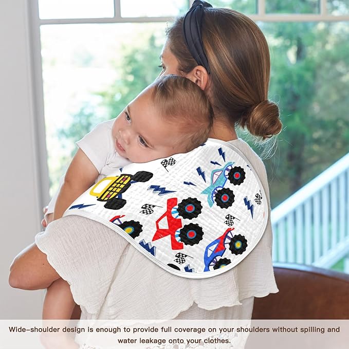 vvfelixl Baby Burp Cloths Monster Truck Cartoon Baby Newborn Cotton Burping Cloths Set Baby Washcloths 4 Pack