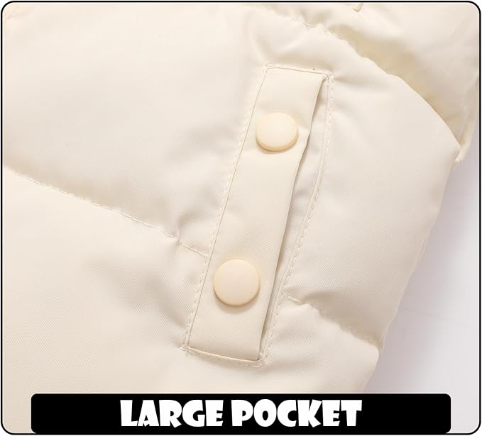 • Design: toddler winter jacket with removable windproof hood and elastic sleeves to prevent baby from catching cold, toddler puffer jacket with high-quality zippers and large pockets on both sides to warm baby's hands and store things.