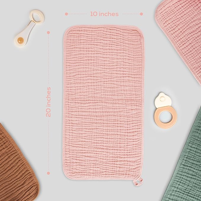 • Super Absorbent: With multiple layers of cotton muslin, these burp cloths are designed to quickly absorb spills, dribbles, and spit-ups, keeping both you and your baby dry.
