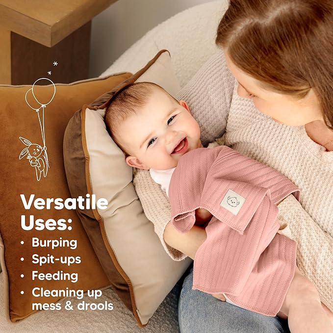 KeaBabies Organic Cotton Burp Cloths Baby Girl, Boy - 6-Pack Large Burping Clothes for Babies, Spit Up Rags, Super Soft & Absorbent Newborn Wash Towels, Gender Neutral, Non-Shrink (Stria, Mauve)