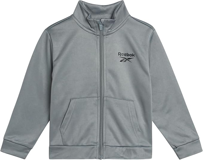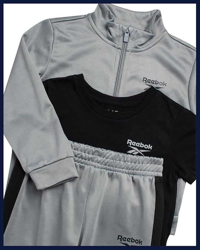 Reebok Baby Boy Pants Set - 3 Piece Tricot Fleece Jogger Pants Short Sleeve T Shirt & Track Jacket for Toddlers & Infants
