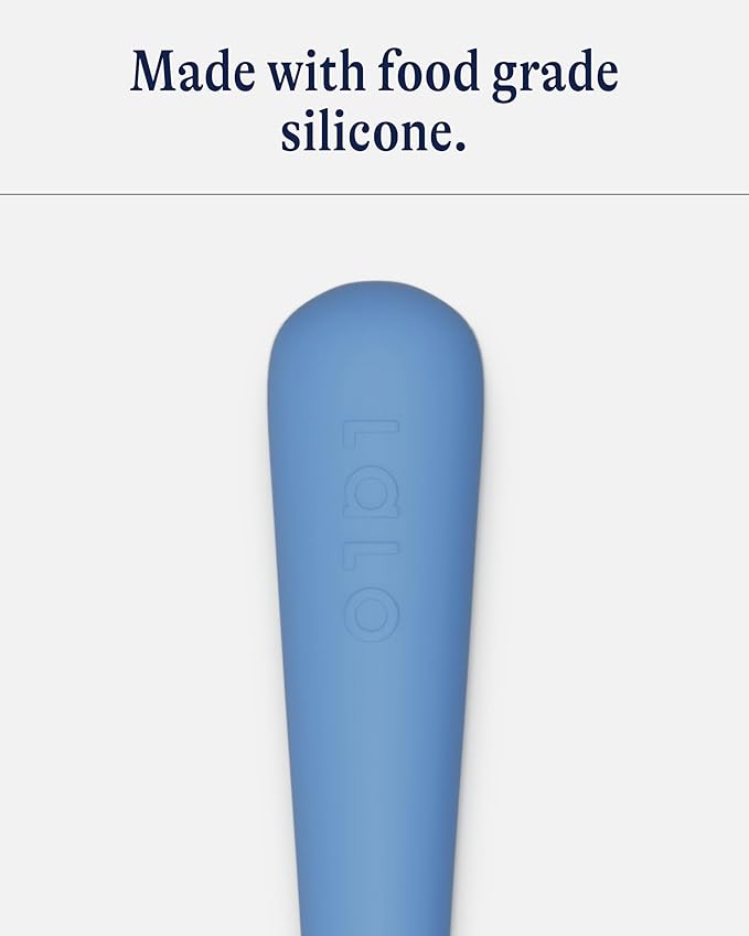 Lalo Little Spoon Set - 2 Piece Baby Spoons Set for Infants & Babies - Made From Food Grade Silicone Dishwasher Safe - Baby Feeding Essentials for Early Stage Mealtime - Blueberry