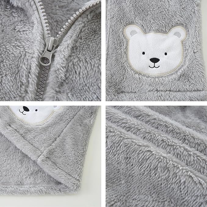 • Fuzzy Material: This baby fleece hooded outerwear is made of polar fleece and plush, snug and lightweight, soft and comfortable, which is super fit for your lovely baby in cold winter/fall. The bear ears hood is lined with a slick fabric and the coat is lined with thick plush, which will keep your baby warm while not overheated.