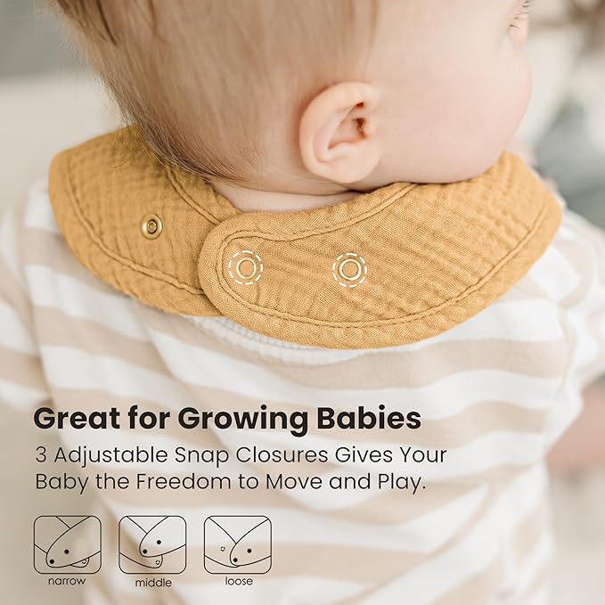 • Soft & Absorbent: These baby bibs are made with a 100% cotton muslin front and a polyester comfort fleece back for superior absorbency and a soft, skin-friendly feel. They effectively soak up drool and spit, keeping both you and your baby clean and dry-no more wet clothes