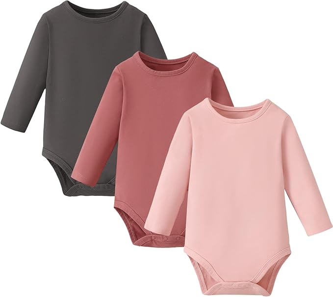 • Features: Solid baby girl long sleeve onsies 18-24 months with crew neck, basic baby girl bodysuit long sleeve, soft stretchy fabric and round neck design which make dressing the baby a breeze with plenty of room to pull over head; this classic baby bodysuit has 3 snap closures at the bottom, easy for dressing and diaper changing