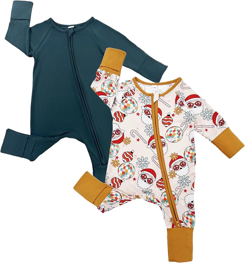 • Long sleeve baby boy bamboo rayon clothes with cute print,plain footies with mitten cuffs, zipper up footed jumpsuit, keep warm in winter, super cute coming home outfits for baby girls and boys .
