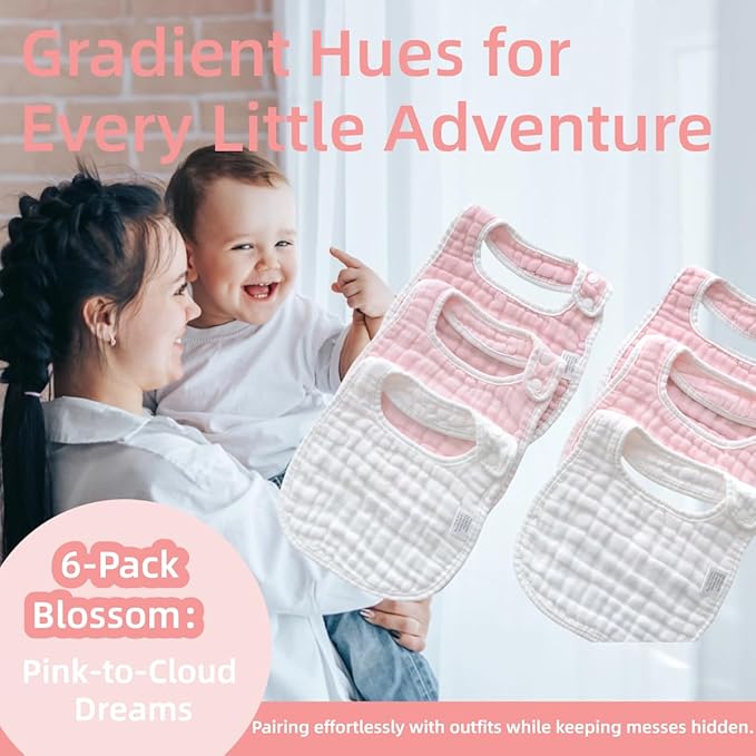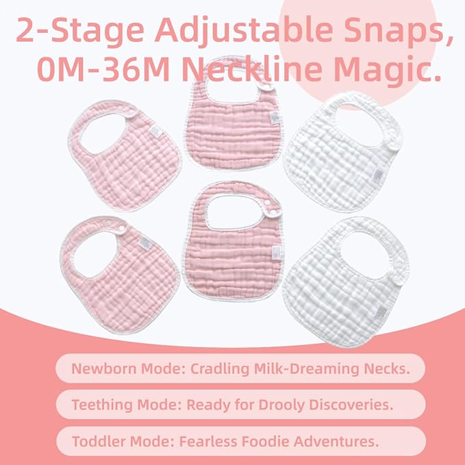 MUKIN Baby Muslin Bibs and Burp Cloths, 6 Pack, Soft Absorbent Cotton, Adjustable