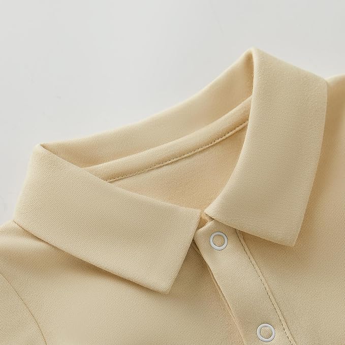 • SIMPLE YET FASHION - Features solid color, unique polo collar, long sleeve and one-piece design. Reversible mittens prevent baby scratching themselves. (only size 0-3m and 3-6m have mittens). Your little one will feel elegant and cozy in our bodysuit