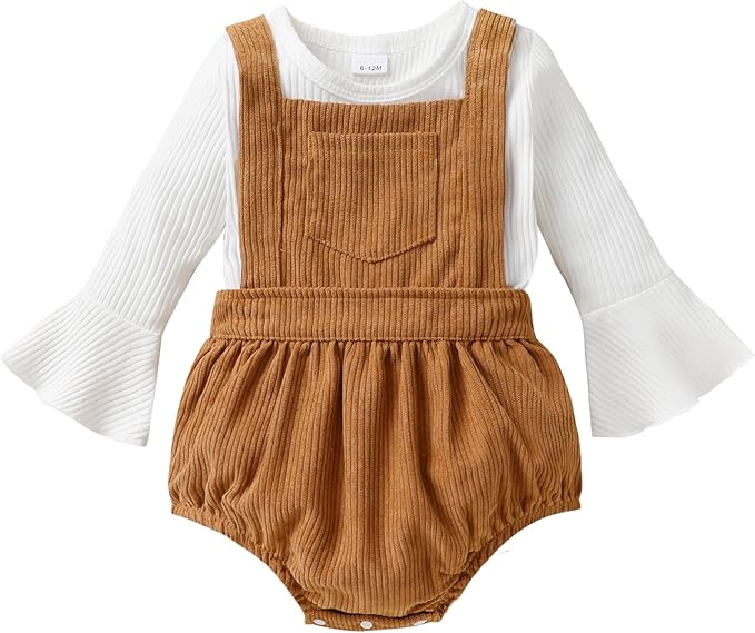 • Unique Cute Design:The newborn baby girl clothes set,bell sleeve white romper and corduroy overalls suspender shorts.Convenient snap closure for easy diaper changes.