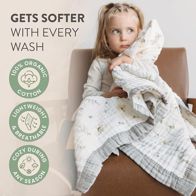 • 10 Layers of Buttery Soft Organic Cotton: After years in fashion, I learned that true quality is about intention - every layer, every thread; This muslin blanket is my love letter to intentional design - luxuriously soft, breathable, and oh-so gentle against sensitive skin