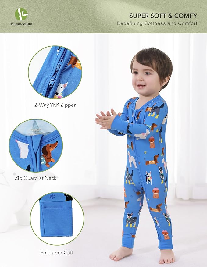 • FUNCTIONAL DESIGN: Foldable mitten design prevents babies from scratching themselves, and fold-over feet design can keep babies warm when they sleep and play. Double zippers are perfect for new parents for quick diaper or outfit changes. Neck tab can cover the zipper to keep it away from the chin.