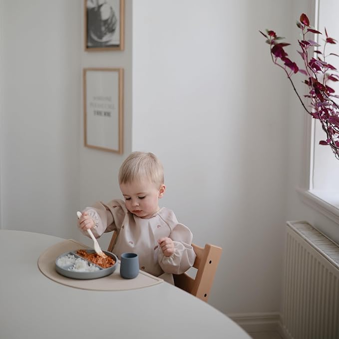 mushie Long Sleeve Baby Bib | Water Resistant Adjustable Fit for Ages 6-24 Months