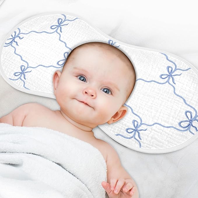 vvfelixl Muslin Burp Cloths Blue Ribbon Bow Baby Washcloths for Baby Girl Boys 2 Pack
