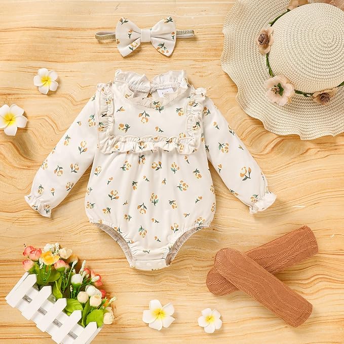 GRNSHTS Newborn Baby Girl Clothes Ruffle Rompers Toddler Fall Outfits for Girls Set Little Girl Fall Winter Clothing