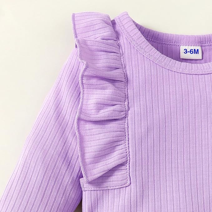 0-24M Infant Ribbed Romper Baby Girls Knit Ruffle Bodysuit Toddler Girl Solid Color Jumpsuit Holiday Shirt Tpos
