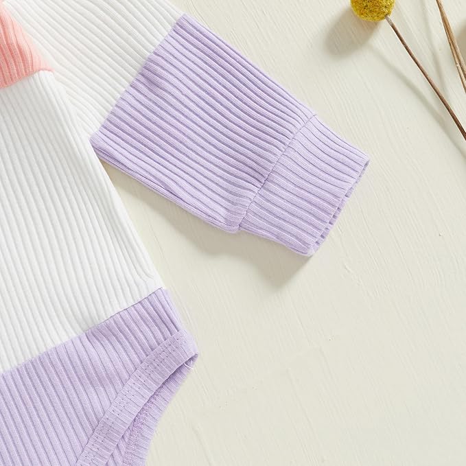 Thorn Tree Newborn Infant Baby Girl Clothes Ribbed Knitted Long Sleeve Romper Long Pants Stretchy Fall Outfits