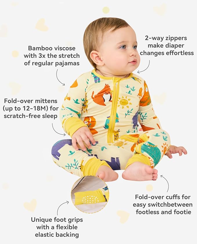 Bamboo Viscose Baby Convertible Footie Pajama, Zipper Pajamas for Baby Boys & Girls, Sleep & Play Footed Pjs