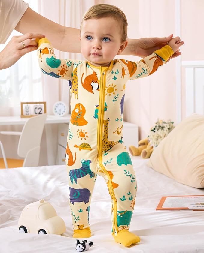 • Redefine Softness: Made from soft, breathable bamboo viscose, the babee Reshinee Zippy baby pajama is gentle on sensitive skin, this footed sleeper is perfect for baby boys, baby girls, and toddlers, ensuring maximum comfort during sleep and play