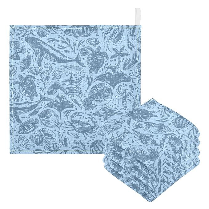 vvfelixl Whale Dolphin Octopus Shark Baby Burp Cloths Baby Muslin Washcloths for Boys Girls Cotton Baby Face Towel for Newborn Infants Soft and Absorbent 11.8 X 11.8 in, 5 Pack
