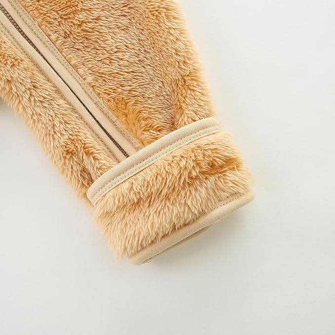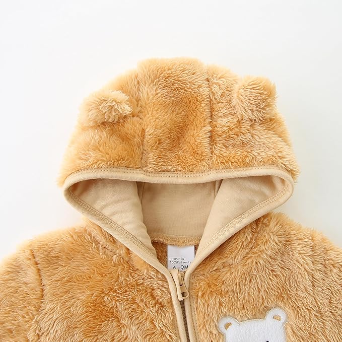 • Upgraded Furry Warm Material:Our baby bear romper is made of high quality polyester,soft,delicate, fluffy and warm,providing the perfect layer for your baby in cold winter.And this snowsuit does not shed hair, does not fade