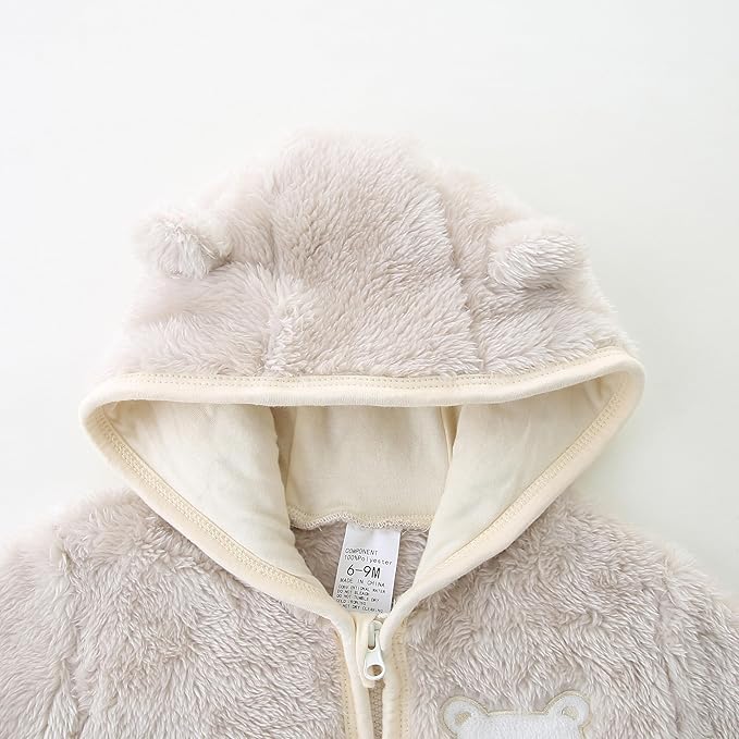 • Upgraded Furry Warm Material:Our baby bear romper is made of high quality polyester,soft,delicate, fluffy and warm,providing the perfect layer for your baby in cold winter.And this snowsuit does not shed hair, does not fade