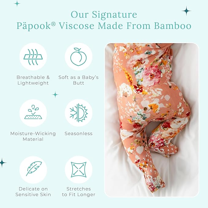 • Breathable, Lightweight Päpook - We crafted these baby sleepers with our signature Päpook viscose from bamboo. The lightweight, award-winning fabric helps keep these infant pajamas ultra-breathable, and will feel buttery soft on your little one's delicate skin.