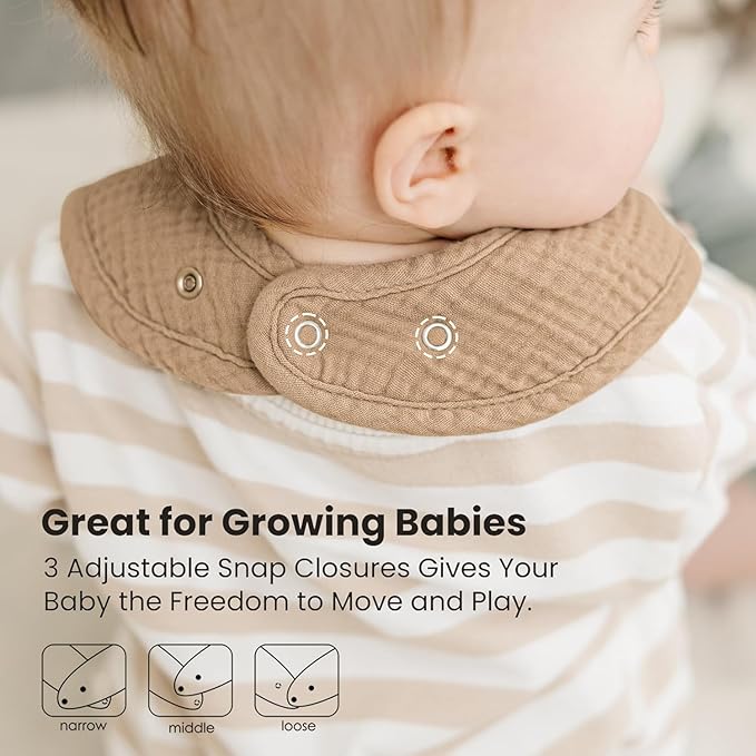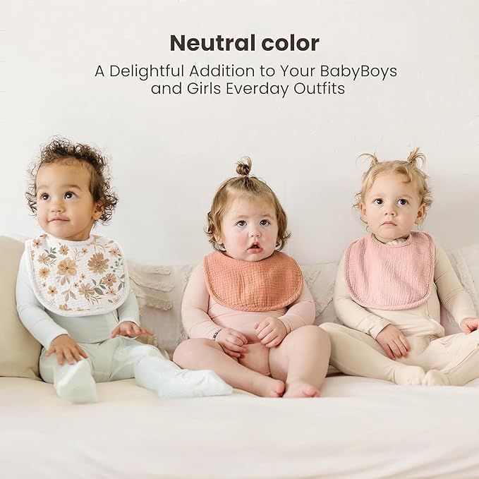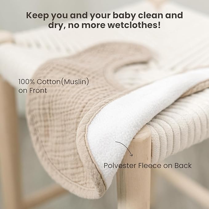 • Soft & Absorbent: These baby bibs are made with a 100% cotton muslin front and a polyester comfort fleece back for superior absorbency and a soft, skin-friendly feel. They effectively soak up drool and spit, keeping both you and your baby clean and dry-no more wet clothes