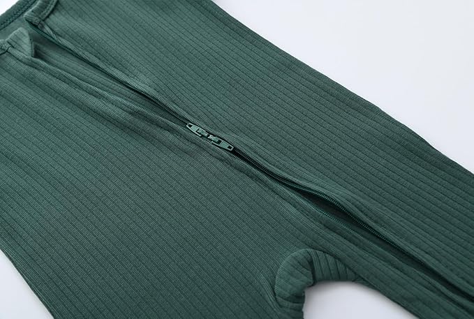 • Double Zippers Sleepers: 6 months baby footie pajamas open from neck to feet, two-way zipper at both ends, makes this onesies easy to put on and take off, perfect for changing baby’s diapers. Safety neck tab protect baby's delicate skin