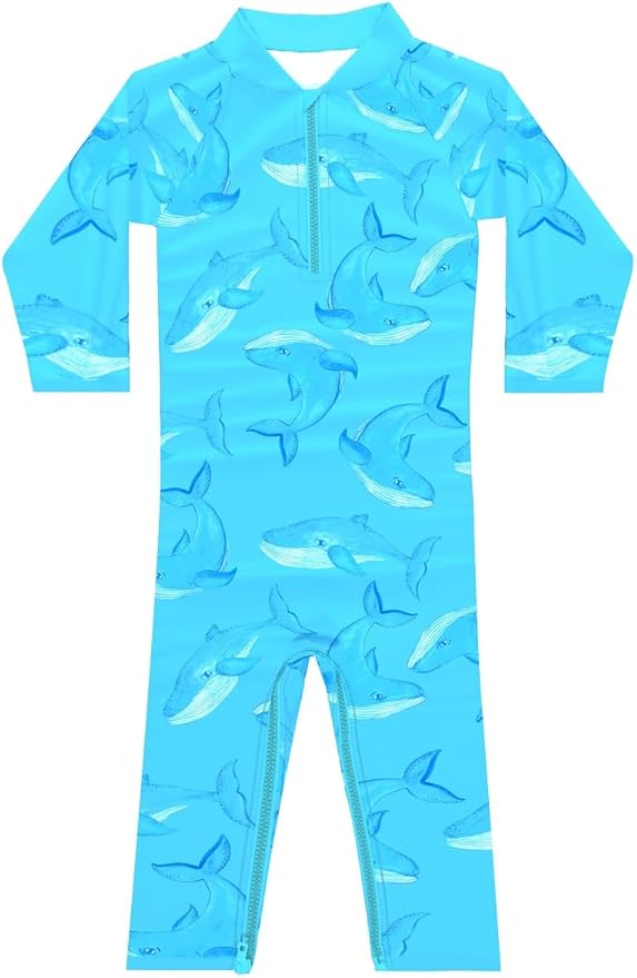 weVSwe Baby Toddler UPF 50+ Sun Protection Rash Guard Long Sleeve Swimsuit with Crotch Zipper