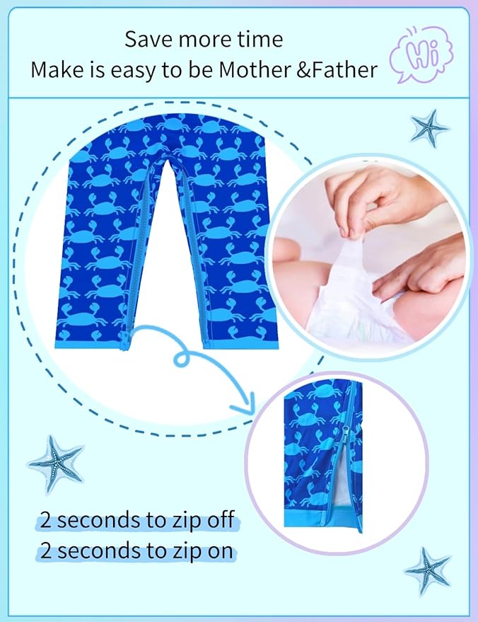 • ·Unique Design:Extra zipper closure at crotch and front zipper with puller for quicker diaper changing and easier ON/OFF.