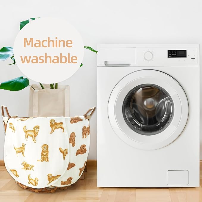 LifeTree Muslin Baby Burp Cloths - 2 Pack 70% Viscose from Bamboo and 30% Cotton Large 22'' by 10'' Absorbent Milk Spit Up Rags - Burping Cloths for Newborn, Girls Boys, GoldenRetriever & PoodleDog