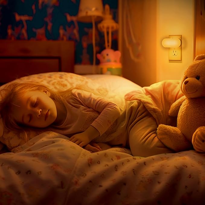 • Amber LED Night Light: The amber night light creates a soft, warm light that’s perfect for relaxing at night. It helps set a peaceful tone for your bedroom, nursery, or bathroom, providing the ideal plug in night light for sleep