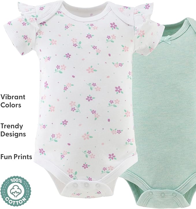The Peanutshell Baby Girl Short Sleeve Bodysuits - 100% Cotton Soft Infant Girls' Outfits, 0-24 Months - Cherry Blossom
