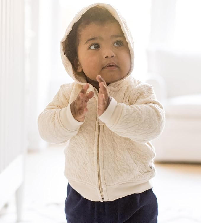 • 100% Breathable Organic Cotton: Gentle for babies, available in baby girl jackets, newborn coats, and infant sweatshirts.