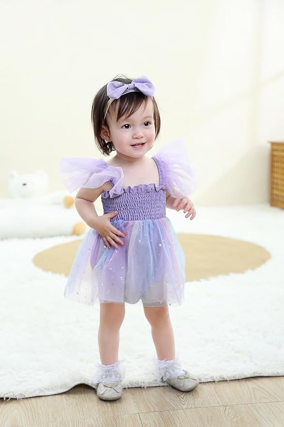• Material: Baby girls romper made of Cotton+tulle fabric, super soft and breathable, comfortable absorbent to wear, friendly to baby's skin, cares for newborns too.