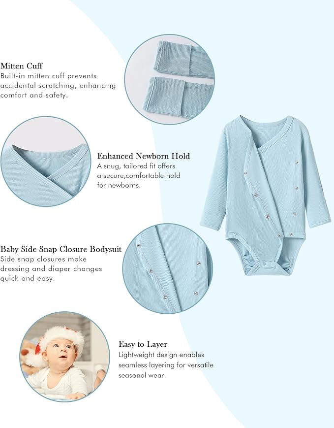 • Material: Our kimono onsies side snap bodysuit baby made of viscose from Bamboo, skin-friendly, comfortable and breathable. Best gift for your newborn baby.