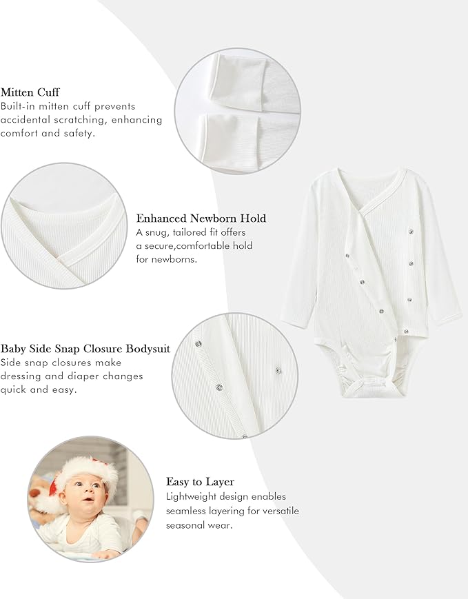 • Material: Our kimono onsies side snap bodysuit baby made of viscose from Bamboo, skin-friendly, comfortable and breathable. Best gift for your newborn baby.