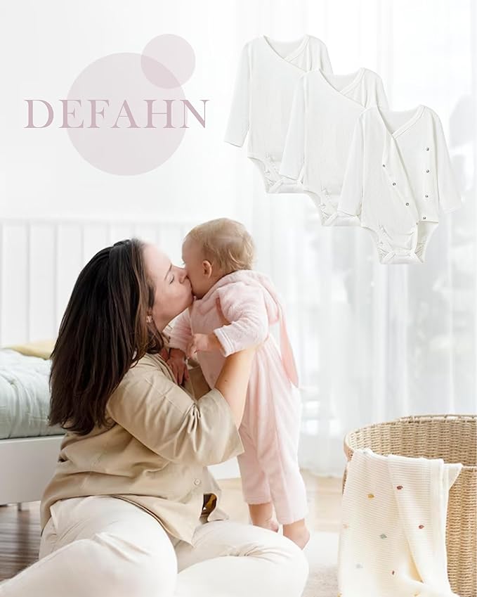 DEFAHN Viscose from Bamboo Baby Side Snap Bodysuit Kimono Onsies 3-Pack Long Short Sleeve Boy Girl Boys
