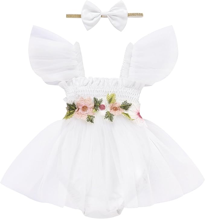 • Material: Baby girls romper made of Cotton+tulle fabric, super soft and breathable, comfortable absorbent to wear, friendly to baby's skin, cares for newborns too.