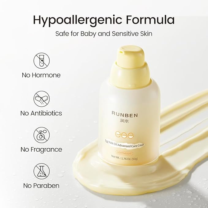 • 【48H Deep Moisturizing】RUNBEN Baby Face Cream with Egg Yolk Oil delivers 48-hour long-lasting hydration, boosted by a specialized high-moisture formula. It effectively eases dryness-related tightness, making it ideal for daily care—especially for sensitive skin in harsh autumn and winter.