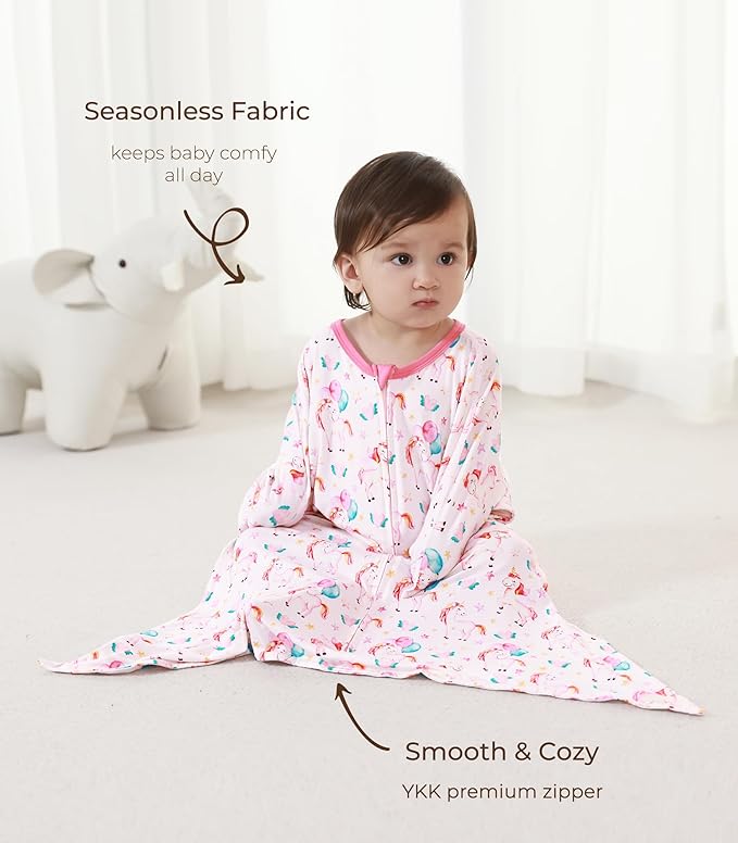 • Comfortable Fit: Crafted from premium viscose from bamboo, this wearable blanket provides an incredibly soft touch that’s perfect for your baby's sensitive skin. The natural fibers ensure a comfortable, cozy feeling all night long, promoting better sleep every day. Our signature fabric (95% viscose made from bamboo and 5% spandex) is breathable and moisture-wicking, keeping your baby cool and dry, making it ideal for year-round wear, ensuring your little one stays comfortable in any season.
